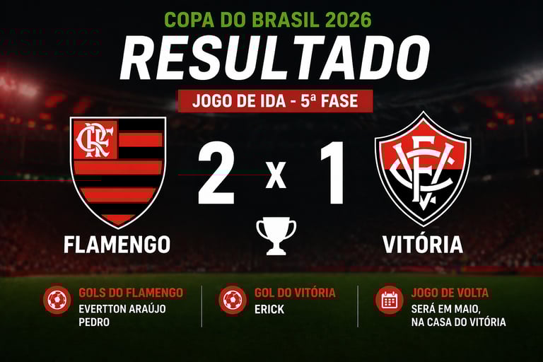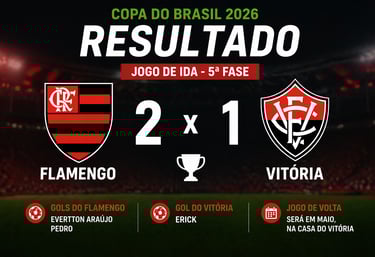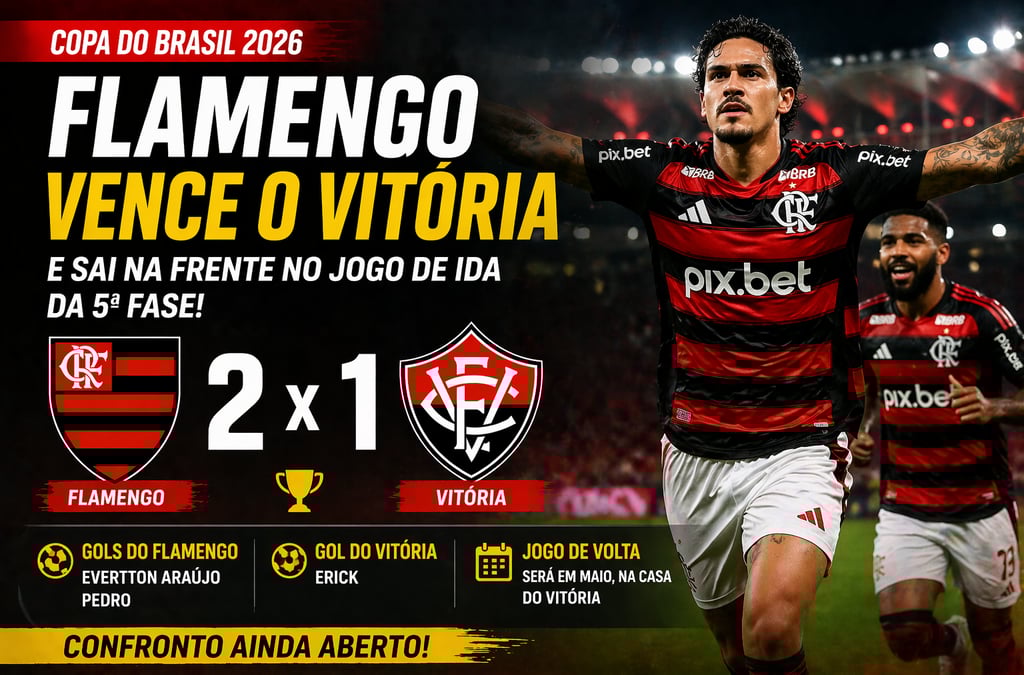 O Flamengo largou na frente na disputa por uma vaga nas oitavas de final da Copa do Brasil 2026. Jogando no Maracanã, o time carioca venceu o Vitória por 2 a 1 no jogo de ida da quinta fase da competição.
